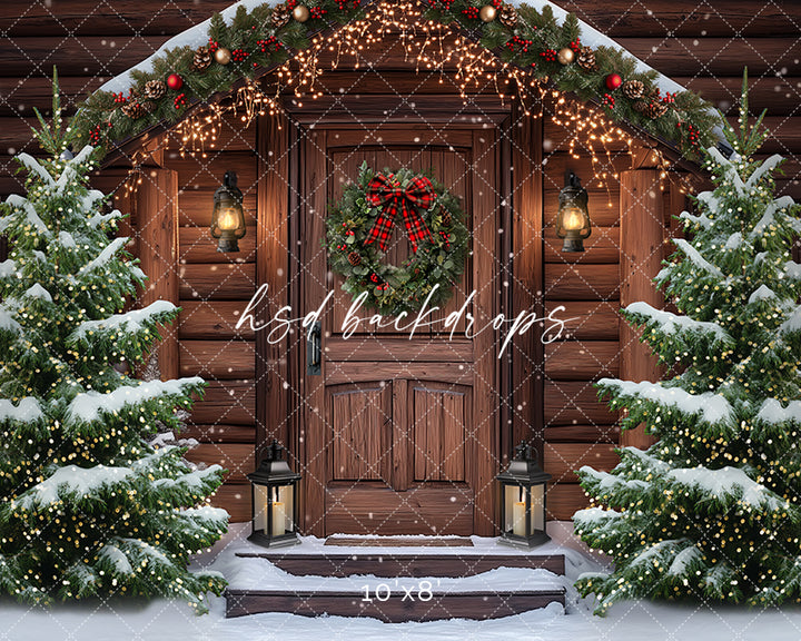 Escape to a winter wonderland in the woods with the Christmas at the Cabin photo backdrop!