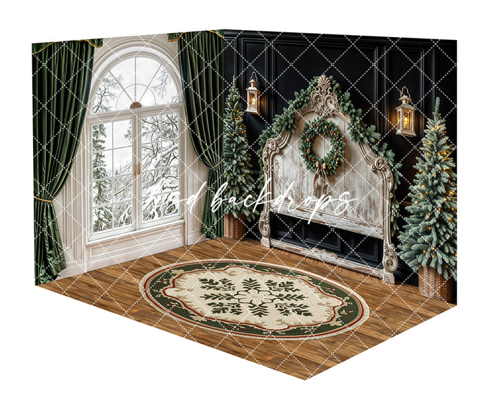 Please note: We are not able to swap out backdrops or floors with rooms. If you would like to change a backdrop or floor you will need to purchase each listing individually. Rooms consist of designs that pair well together but many designs are not seamless where the backdrops meet in the corner. A small Christmas tree or spruce tree in the corner will add depth and help hide where the backdrops meet. Backdrops and floor mats will ship separately.