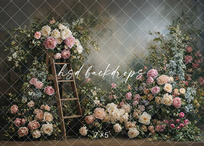 Blush Garden Ladder Floral Photography Backdrop – Romantic Fine Art Portrait Scene | HSD Backdrops