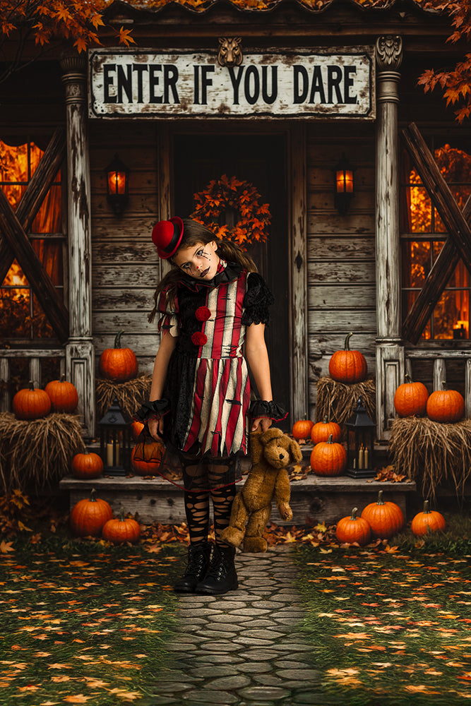 search words: fall, autumn, poor, Halloween haunted house door photo backdrop