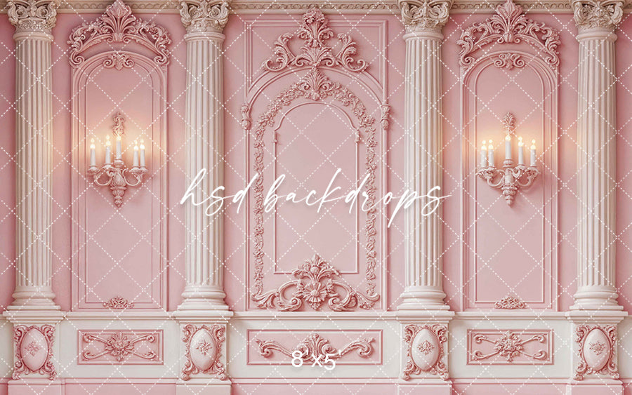 Step into timeless elegance with our Pink Rococo Palace backdrop. Featuring intricate baroque paneling, ornate carvings, and glowing candle sconces, this backdrop evokes French royal charm with a blush-toned twist. Perfect for princess sessions, birthday portraits, cake smashes, or romantic stylized shoots.