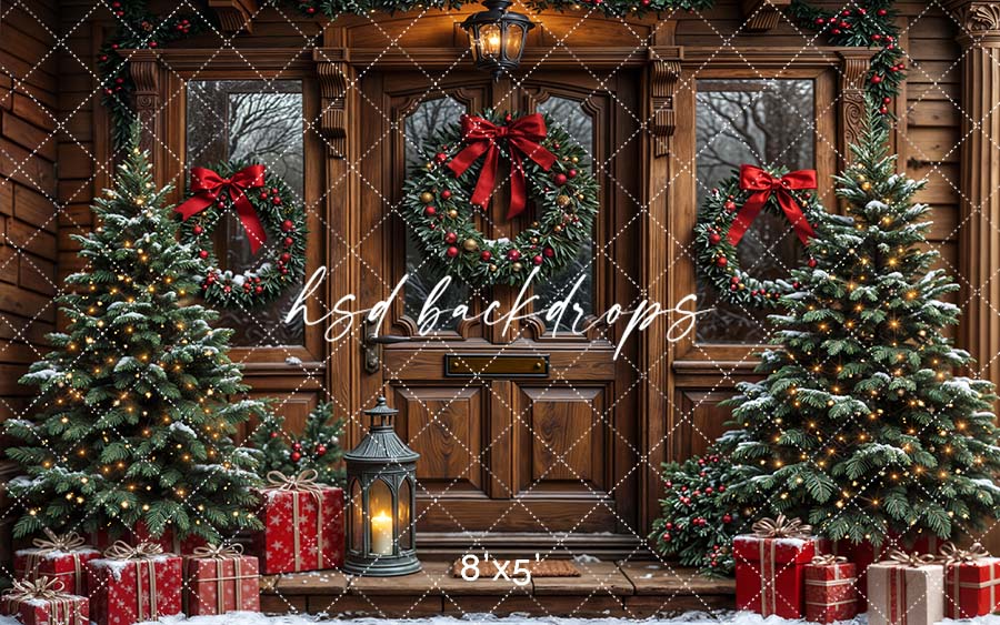 search words: winter, holiday, snowy, rustic Christmas door, porch, photo background