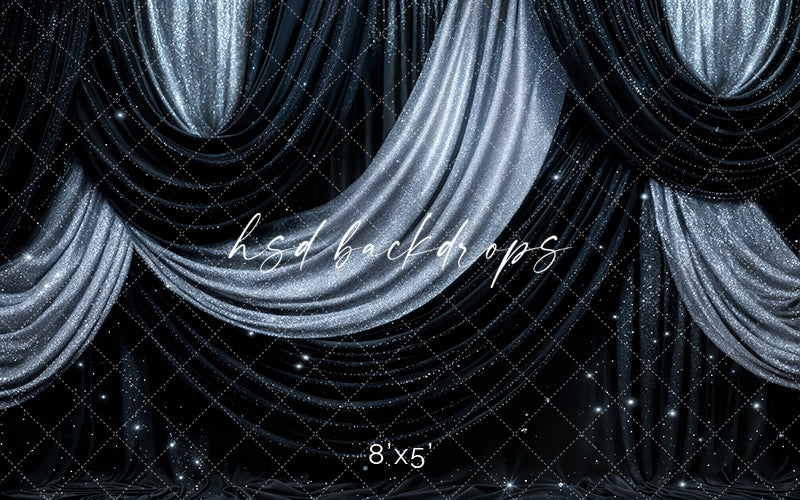 Shine bright with the Silver Stardust Drapes – New Year’s Eve Photography Backdrop. Featuring luxurious layers of black and silver fabric with a soft, glittering shimmer, this elegant design creates a stunning celestial ambiance for your portraits. Perfect for holiday minis, glam celebrations, or midnight countdown sessions, it adds sophistication and sparkle to every photo.