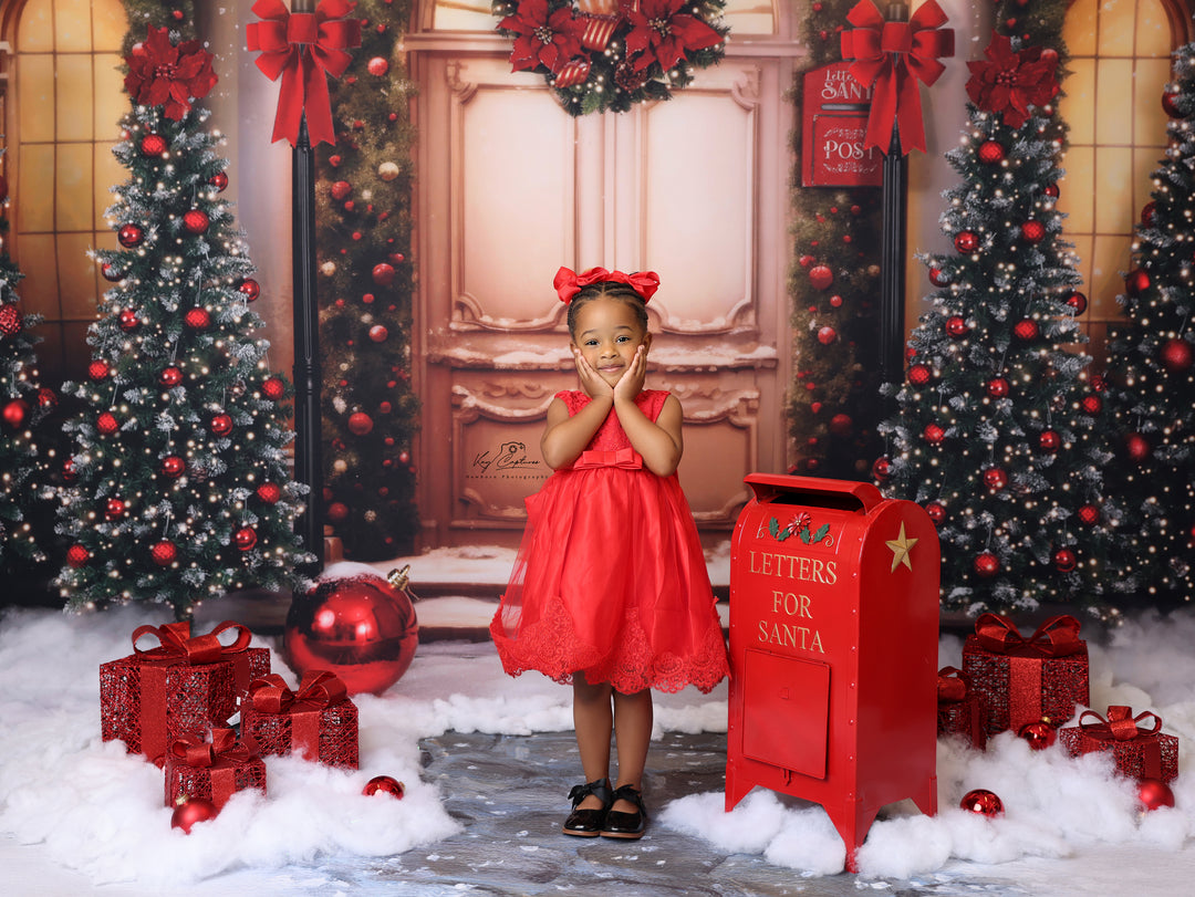 Christmas Door Backdrop with Christmas Trees for Studio Portraits
