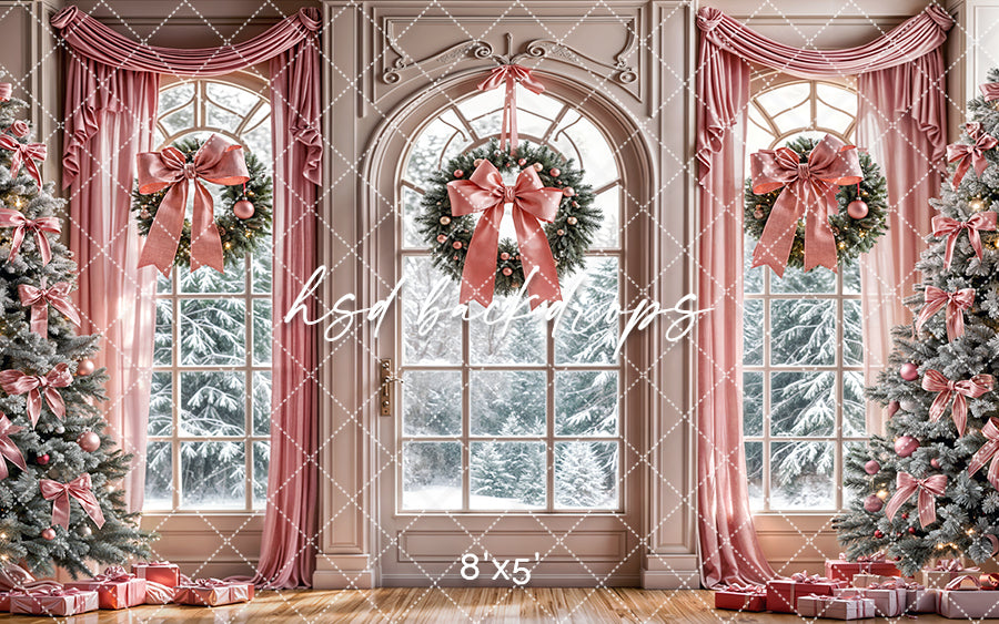Pink Christmas Waltz Window Studio Backdrop (sweep options)