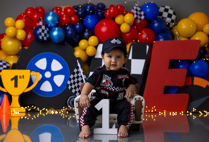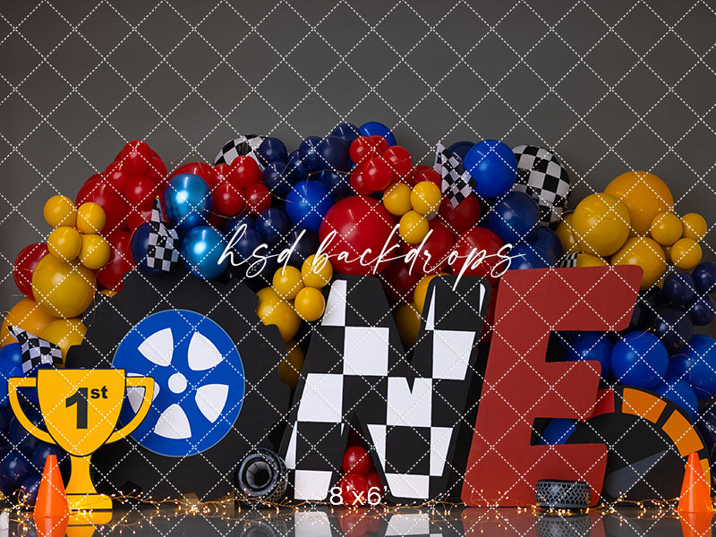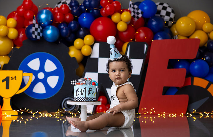 Fast ONE racing theme 1st birthday cake smash backdrop