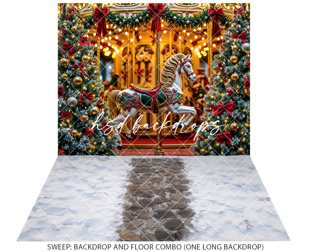 Christmas Carousel Wonderland – Holiday Lights & Tree Backdrop