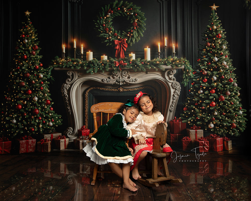 search words: winter, holiday, Christmas tree, elegant Christmas fireplace photo background