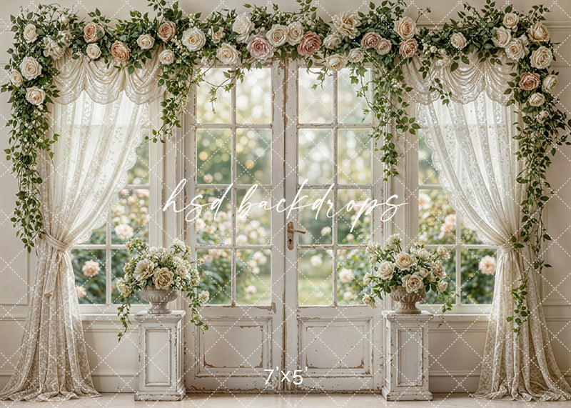 Rose Garden Manor Window – Elegant Spring Backdrop