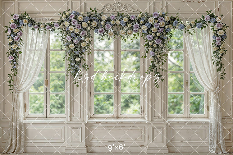 Bring timeless elegance to your studio with the Spring Manor Window – Floral Arch Backdrop, featuring grand vintage windows framed by cascading pastel roses and lush greenery. Soft ivory drapes, ornate trimwork, and blooming florals create a refined manor-house atmosphere perfect for spring minis, fine-art portraits, maternity sessions, and bridal photography. The dreamy outdoor garden view paired with delicate floral detailing adds sophistication and gentle spring charm to every photoshoot.