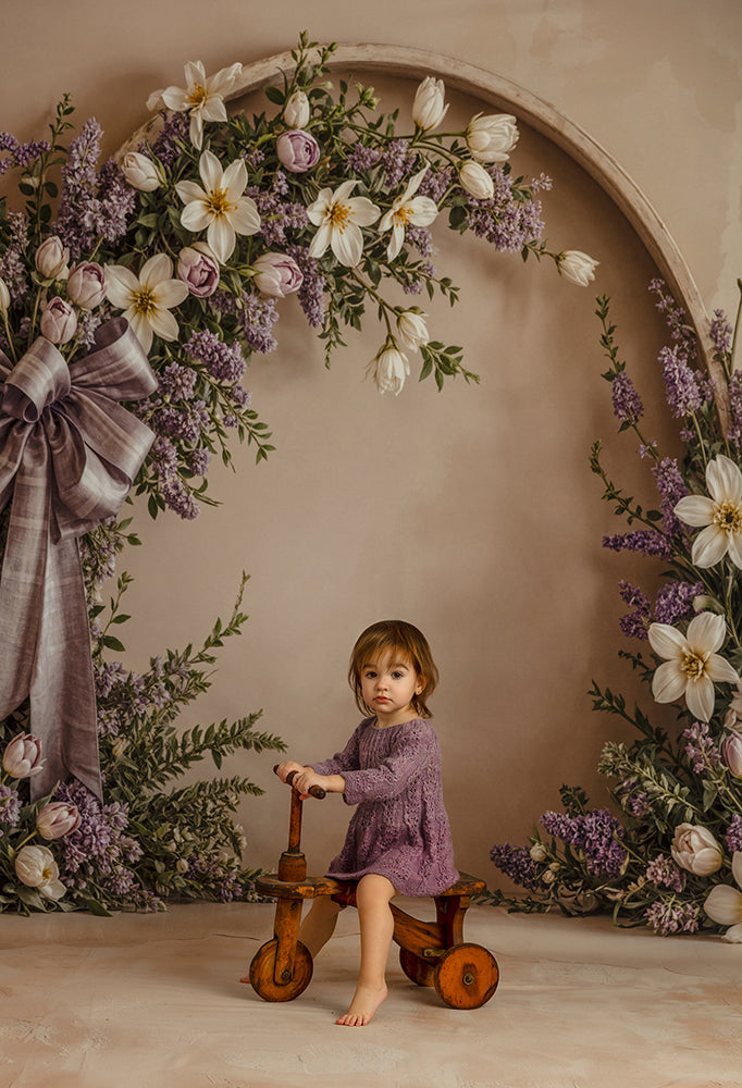 Embrace the elegance of spring with our Lavender Grace Floral Arch Photography Backdrop, a breathtaking design that blends soft sophistication with natural romance. Featuring cascading lavender sprigs, creamy tulips, and white florals gracefully framing a neutral arched background, this backdrop evokes a serene, fine-art feel that complements any portrait session. The delicate purple bow adds a touch of refinement, making it perfect for motherhood portraits, spring minis, maternity sessions, and Easter photography.