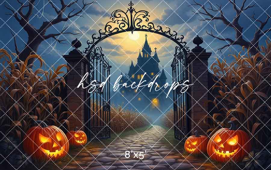 Pumpkin Hollow Gate Haunted House Photo Backdrop (sweep options)