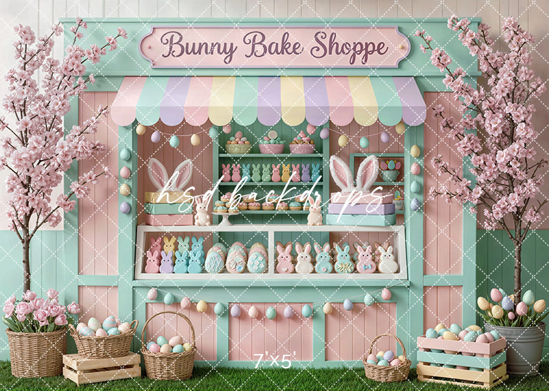 Step inside a pastel wonderland with the Bunny Bake Shoppe Window Photography Backdrop! This charming setup features a bakery storefront decorated with bunny cookies, colorful eggs, and soft florals beneath a pink-and-mint awning. Ideal for Easter minis, children’s portraits, and bakery-inspired cake smash photoshoots.
